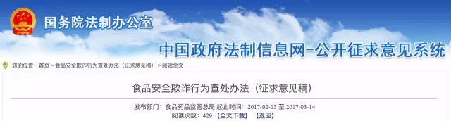 第一条【立法目标】为峻厉查处食物平安欺诈行为,食物平安,保障身体健康和生命平安,按照《中华人平易近国食物平安法》等法令律例,制定本法子。第二条【合用范畴】县级以上食物药品监视办理部分根据职责分工查处食物平安欺诈行为,合用本法子。第【概念界定】本法子所称食物平安欺诈是指行为人正在食物出产、储存、运输、发卖、餐饮办事等勾当中居心供给虚假环境,或者居心坦白实正在环境的行为。第四条【根基准绳】县级以上食物药品监视办理部分查处食物平安欺诈行为,该当遵照严酷、及时、公开、的准绳。第五条【共同查处权利】食物出产运营等相关行为人该当共同食物药品监视办理部分对食物平安欺诈行为的查处,出产运营场合,照实供给相关材料、数据和消息。(一)正在产物研发、进货检验、出厂查验、储存运输、不及格食物处置、食物平安变乱措置等勾当中坦白实正在环境或者进行虚假记实;(三)正在出产运营勾当中伪制、变制或者利用伪制、变制的出产运营许可证书、产物注册证书、存案凭证、查验检疫及格证明、产地证明、购货凭证等文件;(二)虚假标注企业名称、产物注册证号、出产许可证号、加工工艺、产地、出产地址、联系体例等消息;第十条【食物宣传欺诈】以收集、德律风、电视、、、会议等体例宣传食物,有下列景象之一的,属于食物宣传欺诈:(一)食物的机能、功能、产地、规格、成分、出产者、尺度、查验演讲等消息取现实环境不符;(三)通俗食物、暗示具有功能或者特殊医学用处的,或者利用“可医治”、“可治愈”等医疗术语;(一)食物查验机构查验数据,私行改换样品,伪制试验记实、查验数据和查验成果,出具虚假查验结论等;(二)食物认证机构违反认证法式坦白实正在环境、审核记实、伪制认证文书或者出具虚假认证结论等。(一)申请保健食物、特殊医学用处配方食物、婴长儿配方乳粉产物配方注册时,供给虚假消息、数据、材料和样品;(一)保健食物进行存案时,供给虚假研告、产物配方、出产工艺、平安性和保健功能评价材料、查验演讲等材料;(四)食物储存办事供给者向监管部分演讲虚化名称、地址、代表人或者担任人姓名,以及储存食物的所有人、联系体例等消息;(五)集中买卖市场创办者演讲虚假市场名称、居处、类型、代表人或者担任人姓名、食物平安办理轨制、食用农产物次要品种、摊位数量等消息。第十六条【提交虚假监管消息】食物出产运营者正在食物药品监管部分进行监视查抄、抽样查验、案件查询拜访、变乱措置时,坦白实正在环境,或者提交虚假的天分证明、进货检验记实、食物出产运营记实、出厂查验记实、食物查验及格结论、扣问消息等,属于向监管部分提交虚假消息。第十七条【产物欺诈法令义务】 违反本法子第七条第(一)、(二)、(三)、(四)项,由县级以上食物药品监视办理部分按照《食物平安法》第一百二十第一款的赐与惩罚,并对其代表人、次要担任人、间接担任的从管人员和其他间接义务人员处1万元以上3万元以下罚款。违反本法子第七条第(五)项,由县级以上食物药品监视办理部分按照《食物平安法》第一百二十四条第一款的赐与惩罚,并对其代表人、次要担任人、间接担任的从管人员和其他间接义务人员处1万元以上3万元以下罚款。第十八条【食物出产运营行为欺诈法令义务】违反本法子第八条,由县级以上食物药品监视办理部分赐与,并处1万元以上3万元以下罚款,并对其代表人、次要担任人、间接担任的从管人员和其他间接义务人员处5千元以上1万元以下罚款。(二)、(四)、(五)、(六)项,由县级以上食物药品监视办理部分按照《食物平安法》第一百二十五条第一款的赐与惩罚,并对其代表人、次要担任人、间接担任的从管人员和其他间接义务人员处1万元以上3万元以下罚款。违反本法子第九条第(三)项,由县级以上食物药品监视办理部分按照《食物平安法》第一百二十四条第一款的赐与惩罚,并对其代表人、次要担任人、间接担任的从管人员和其他间接义务人员处1万元以上3万元以下罚款。由县级以上食物药品监视办理部分赐与,并处1万元以上3万元以下罚款,并对其代表人、次要担任人、间接担任的从管人员和其他间接义务人员处5千元以上1万元以下罚款。违反本法子第十条第(七)项,由县级以上食物药品监视办理部分按照《食物平安法》第一百二十五条第一款的赐与惩罚,并对其代表人、次要担任人、间接担任的从管人员和其他间接义务人员处1万元以上3万元以下罚款。对食物做虚假宣传且情节严沉的,按照《食物平安法》第一百四十条第五款处置,并对其代表人、次要担任人、间接担任的从管人员和其他间接义务人员处1万元以上3万元以下罚款。食物宣传欺诈涉及相关部分职责的,由县级以上食物药品监视办理部分移交相关部分处置,并向社会通知布告。第二十一条【消息欺诈法令义务】 违反本法子第十一条,单元和小我、、虚假食物平安消息,形成违反治安办理行为的,该当移交机关依法处置。违反本法子第十一条,或者从业人员存正在虚假旧事欺诈行为的,由县级以上食物药品监视办理部分移送相关部分依法处置,并向社会通知布告。第二十二条【食物查验、认证欺诈法令义务】 违反本法子第十二条第(一)项,按照《食物平安法